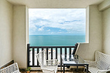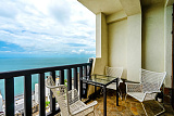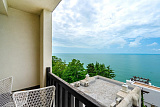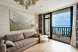 Апартаменты расположены в наиболее престижной части комплекса, откуда открываются впечатляющие виды на море из гостиной и спальни. Просторная комната с выходом на балкон, обставленный плетеными креслами, станет прекрасным местом для утренних завтраков под звуки морского прибоя.