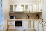 Кухня оборудована современной бытовой техникой высокого уровня.