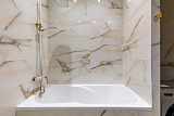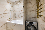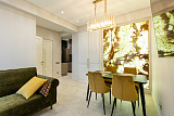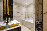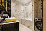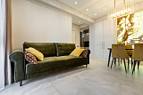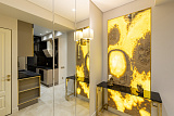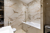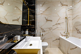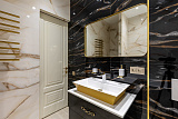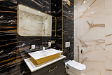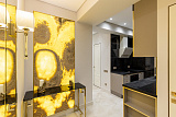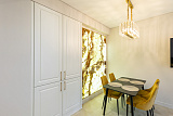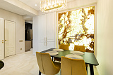 Говоря о самых главных достоинствах данного предложения, в первую очередь хотелось бы обратить ваше внимание на факт грамотного зонирования пространства и стильную отделку, которая не оставит равнодушными даже самых искушенных и привередливых ценителей. Основа стилистической концепции – утонченная современная классика. В оформлении пространства использованы дорогостоящие материалы: мрамор, латунь. Мебель и техника подбирались в полном соответствии с тематикой оформления. Здесь стоит побывать лично, чтобы насладиться эстетикой и царящей внутри атмосферой в полном объеме.