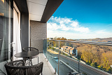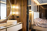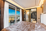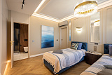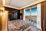 Квартира состоит из двух полноценных спален, каждая из которых имеет свой собственный санузел, что обеспечивает максимальный комфорт для проживания нескольких человек. В хозяйской спальне есть собственный балкон с потрясающим видом на море и горы. Это позволяет наслаждаться утренним кофе или тихим вечером с видом на ландшафт, создавая атмосферу идеального отдыха.