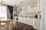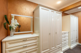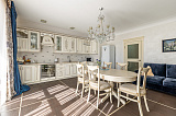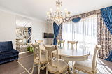 Особо пристального внимания заслуживает стильный дизайнерский ремонт в основе которого лежит роскошный классический стиль. Мебель, текстиль и элементы декора авторы проекта кропотливо подбирали в соответствии с общей стилистикой. Например, люстры из муранского стекла были куплены на выставках в Италии, а текстиль заказан из Испании. Эту квартиру действительно нужно увидеть своими глазами, чтобы в самом полном объеме насладиться ее эстетикой и роскошью!