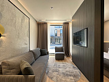 Для начала расскажем вам о главных параметрах данного объекта. Площадь апартаментов составляет 50 м2. Спальная комната изолирована, а гостиная объединена с кухней. Есть открытый балкон, где можно сделать зону для отдыха с прекрасным видом на горы. Отметим и то, что апартаменты не требует дополнительных вложений. Тут уже все готово для жизни и отдыха. Стильный и современный интерьер отличается не только визуальной эстетикой, но и функциональностью.  В оформлении продумана каждая деталь, за счет чего достигается максимальный комфорт. Впрочем, в этом вы сможете убедиться в рамках личного визита!