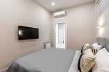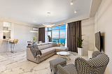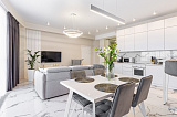 Общая площадь составляет 100 кв.м. Внутреннее пространство гармонично поделено на 2 непроходных спальных комнаты, гостиную, объединенную вместе с кухней, санузел и открытый балкон с невероятно красивым видом на морскую акваторию и субтропическую зелень.