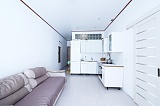 Функциональная планировка включает в себя кухню-гостиную, объединенную с обеденной зоной, уютно расположенной перед панорамным окном. Далее Вы проходите в комнату для отдыха с отдельной зоной, где по Вашему желанию можно сделать дополнительную спальню, кабинет или гардеробную комнату. Все зависит только от ваших фантазий и предпочтений! Совмещенный санузел достаточно просторный, позволяет разместить даже встроенный шкаф, чтобы избавить Вас от лишней мебели в коридоре и комнатах.