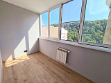 Планировка : кухня-гостиная с выходом на балкон, раздельный санузел с ванной комнатой, просторная прихожая, жилая комната и лоджия отапливаемая, утепленная может использоваться как детская или кабинет. Из окон видно море, горы, территория придомовая дома. Окна на две стороны.