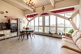 Сама квартира представляет собой - просторный зал -кухню - гостиную, две небольшие спальные комнаты - одна на первом этаже, вторая на втором, и 2 санузла, один на первом и один на втором этажах. По вопросам приобретения или другим интересующим Вас вопросам, обращайтесь по вышеуказанным контактам.