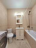 В квартире выполнен качественный ремонт, как говорится для себя. Распланирована в две спальни, кухня-гостиная. Ванная комната со стиральной машинкой.