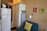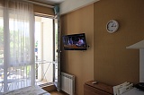 Представленная студия находится в новом доме на улице Санаторной. Микрорайон Новый Сочи — тихий и зелёный район, расположенный всего в 10 минутах езды от центра Сочи. Он славится своими отличными пляжами, тишиной и близостью к центру. Кроме того, инфраструктура тут развита на самом высоком уровне: