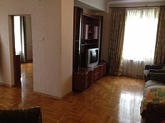 В этой квартире гармонично сочетаются такие аспекты как большая площадь и продуманная планировка. Выделено две небольшие спальни – хозяйская и детская. Просторная кухня объединена вместе с гостиной зоной. Санузел совмещенный.