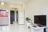 Именно в этом жилом комплексе и находится представленный Вашему вниманию объект – просторная тридцатиметровая студия с готовым для жизни ремонтом и прекрасным видом на морскую панораму! Общая ее площадь составляет ровно 30 квадратных метров. Студийная планировка пространства подразумевает отсутствие межкомнатных перегородок и стен. Кухня, гостиная и спальня – это, по сути, одна комната. Выполнено очень удобное зонирование, в чем Вы можете убедиться, увидев квартиру собственными глазами. Красивый и очень качественный ремонт, пребывающий просто в идеальном жилом состоянии. Установлена вся мебель и бытовая техника, что позволяет Вам переехать в Ваш новый дом сразу после покупки! В квартире нет абсолютно ничего лишнего – все предельно лаконично и функционально.