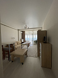 Жилая площадь квартиры составляет 32,2 метра + 25 метров – это просторная терраса с чудесным морским видом. Пространство распланировано стандартным для однокомнатных квартир образом: изолированная спальная комната, кухня-гостиная и совмещенный санузел.