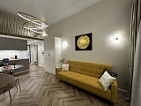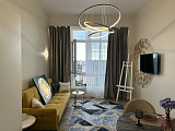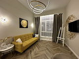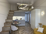 Просмотрев фотографии студии, вы можете отметить для себя факт стильного ремонта, выполненного внутри. Установлена мебель и бытовая техника, поэтому дополнительных вложений в обустройство пространства квартира практически не требует. Отдельный плюс – система теплых полов.