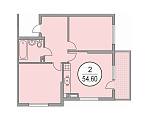 Общая площадь квартиры составляет 54,6 кв.м., а планировка включает в себя просторную кухню-гостиную, две уютные спальни, один совмещенный санузел и балкон с видом на благоустроенную территорию комплекса и Национальный парк.