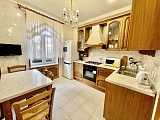 Ремонт в очень хорошем состоянии. Интерьер оформлен в классическом стиле. Мебель и техника при продаже остаются, поэтому переезд можно планировать сразу. Характерная черта для домов такого типа – это высокие потолки, большие окна и широкие дверные проемы. Из окон открывается приятный вид на зелень.