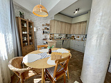 Квартира выполнена в качественном дизайнерском ремонте в светлых тонах, что создает атмосферу легкости и уюта. Использование современных материалов и технологий подчеркивает элегантность интерьера. Просторная планировка включает в себя светлую гостиную, две уютные спальни, функциональную кухню и элегантный санузел. Каждое помещение наполнено светом благодаря большим окнам, которые открывают великолепные виды на море и окружающий ландшафт.