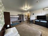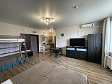 Общая площадь нашего предложения – 41 м2. Студийное планировочное решение – это большой плюс, позволяющий организовать пространство так, как это будет удобно именно вам. Внутри уже все готово для жизни – остается только перевезти личные вещи. Выполнен очень качественный ремонт, установлена мебель, кухонный гарнитур, бытовая техника.