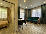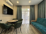 Площадь апартаментов 55 квадратных метров предлагает уютное пространство для жизни или отдыха. Шаговая доступность до пляжа "Бархатные сезоны" обещает возможность наслаждаться морем и пляжем в любое удобное время.