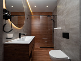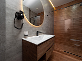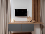Выполнен очень качественный ремонт, который с самых первых минут покоряет своей эстетикой. Здесь на самом деле продумана каждая деталь: от отделочных материалов до декора. Также большое внимание уделено организации зон для хранения личных вещей – это позволяет избавиться от визуального шума в интерьере.