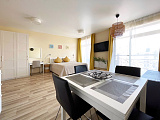 Яркая и стильная студия в апартаментном комплексе «Меридиан». Район отличается очень хорошей экологией, чистыми пляжами. Подробнее