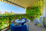 Представляем вашему вниманию уникальный апартамент в самом сердце живописной парковой зоны, в окружении важных объектов научно-деловой и спортивной сферы нашего государства , создают идеальную атмосферу для жизни и отдыха. Этот стильный апартамент общей площадью 85 кв. м. включает в себя просторную кухню, уютную гостиную, отдельную спальню и великолепную террасу с захватывающими видами на комплекс и боковым обзором на море. Интерьер выполнен с безупречным вкусом: