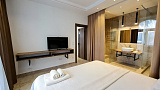 Данный номер находится в четырехэтажном отеле и имеет свой кадастровый номер. Удобная планировка включает одну спальную комнату, гардеробную и кухню-гостиную. Такая планировка обеспечивает комфортное проживание и удобство для сдачи в аренду. В таком номере гости смогут наслаждаться свободным пространством и удобствами для отдыха. Объект представляется с дизайнерским ремонтом 43 квадратных метров с видом на парк, море и бассейн.