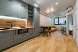Ваши поиски идеального жилья закончатся здесь - представляем вам апартаменты площадью 30 квадратных метров, оформленные в утонченном дизайне, который поражает своей красотой и функциональностью. Вас ожидает уже выполненный дизайнерский ремонт, а также полностью меблированные апартаменты с современной бытовой техникой, что позволит вам наслаждаться проживанием с первого дня.