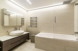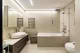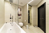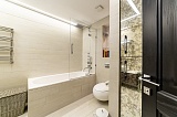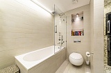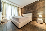 В квартире выполнен дорогой дизайнерский ремонт с применением качественных фирменных материалов отделки и декора. Квартира распланирована на две спальные комнаты, два санузла, кухня с выходом на открытый балкончик, просторную гостиную и гардеробную комнату.