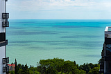 Из кухни гостиной есть выход на балкон, с которого открывается вид в сторону Моря и Адлера. В кухне установлен гарнитур и техника.