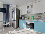Площадь квартиры, представленной вашему вниманию, составляет 33 м2. Пространство здесь поделено на изолированную спальную комнату и гостиную, объединенную с зоной кухни. На самом деле отличное решение для проживания и отдыха в лучшем курортном городе на берегу моря.