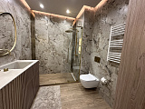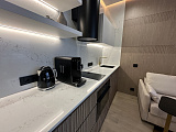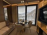 Квартира выполнена с использованием дорогостоящих натуральных материалов, что создает атмосферу уюта и роскоши. В шаговой доступности находятся подъемники на вершины Альпики и Лауры, что делает ее идеальным выбором для любителей активного отдыха.
