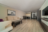 Внутри апартаментов выделено две изолированные спальни и большая кухня, объединенная вместе с гостиной комнатой. Новый ремонт. Подробнее