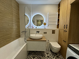 Внутри выполнен стильный дизайнерский ремонт, который точно покорит даже самых искушенных и привередливых эстетов. Основа оформления – классика, дополненная современными скандинавскими мотивами. Важный аспект – удобство и функциональность. Мебель и бытовая техника идеально вписаны в общий стилистический концепт.