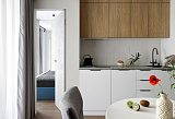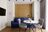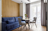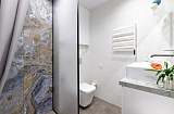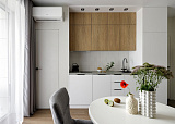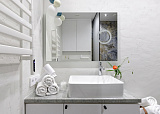 Просторная кухня-гостиная объединяет зону для приготовления пищи и отдыха, оснащена техникой премиум-класса и обеденной группой для приятного времяпрепровождения. Стильный санузел с просторной душевой кабиной дополнен полным набором бытовой техники для комфортной жизни.