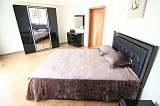 Большая гостиная привлекает необычной формой, панорамным остеклением, оригинальной, двустворчатой дверью-купе. Эксклюзивные люстры украшают сложные потолки с дополнительной подсветкой во всех помещениях квартиры, комнаты раздельные, двери выходят в широкий коридор. В отделке были использованы только самые качественные материалы, а межкомнатные двери стали еще одним важным элементом дизайна. С открытого балкона хозяева смогут любоваться морем и зеленым парком.
