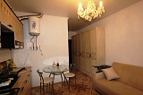 Общая площадь объекта составляет 25 м2. Идеально подходит для проживания одного-двух человек. Свободная планировка жилого пространства, подразумевающая под собой отсутствие межкомнатных перегородок – еще один большой плюс, за счет которого Ваша жизнь и отдых здесь будут еще более комфортабельными. Выполнено очень удобное зонирование. Открывая дверь квартиры, Вы попадаете в прихожую комнату с большим гардеробным шкафом, с правой стороны – санузел. Гостиная часть одновременно выполняет роль спальной комнаты. Установлен новый раскладывающийся диван, кухонный гарнитур, стол и т.д. Также в квартире есть собственный балкончик, с которого открывается очень красивый вид на морскую панораму и центральную часть мкр. Мамайка.