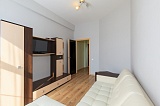 Общая площадь предложения составляет 35 квадратных метров. Планировочное решение выполнено классическим образом: изолированная спальная комната и кухня с небольшой гостиной зоной. Санузел – совмещенный. Также в квартире есть небольшой открытый балкон с очень хорошим видом на городскую панораму.