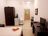 - Небольшая зона кухни с микроволновкой и холодильником;