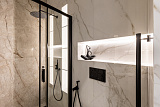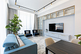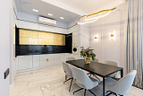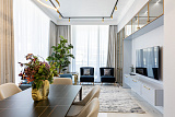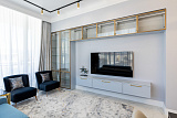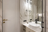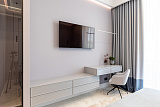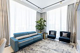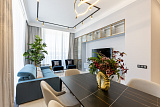 Большое внимание уделено вопросу меблировки. Наполнение для комнат подбиралось по каталогам известных брендов премиум-сегмента. Часть мебели была создана специально, по эксклюзивному заказу. Также отметим, что в пентхаусе есть вся необходимая бытовая техника – от холодильника до систем кондиционирования.