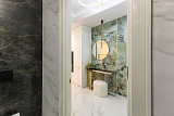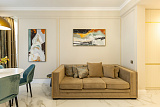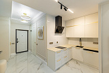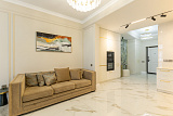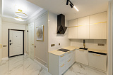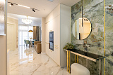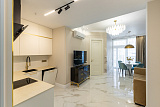 Очень стильный интерьер – аспект, который заслуживает особого внимания. В оформлении пространства задействованы дорогостоящие материалы, которые подчеркивают престиж и статус данного предложения: натуральный мрамор, гранит, латунь. Установлена качественная мебель и бытовая техника. Все пребывает в безупречном состоянии, поскольку тут никто и никогда не жил. Внутри царит атмосфера уюта, лёгкости и чистоты. Прекрасный вид на море и город – отличное дополнение ко всему перечисленному.