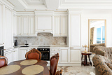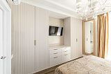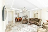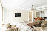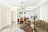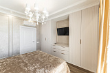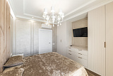 В квартире выполнен новый дорогостоящий ремонт в классическом стиле, соответствующая мебель и техника уже установлены. Планировка: кухня с просторной гостиной, спальня с гардеробом и выходом на открытый балкон, прихожая с гардеробной и совмещенный санузел.