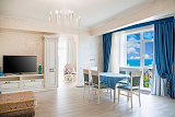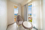 Особым достоинством является просторная открытая терраса, откуда открывается захватывающий вид на город и морской пейзаж. Такое преимущество доступно немногим владельцам элитной недвижимости в Сочи.