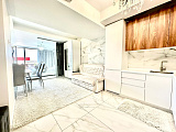 Номер разделен на спальную и кухонную зону, совмещенный санузел. Выполнен качественный ремонт из дорогостоящих материалов, сделанный исключительно по дизайн-проекту. Имеется вся необходимая мебель и техника. Балкон с видом на море и приморскую набережную!