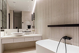 В комплексе "Новая Александрия" предлагается уникальная квартира с новейшим дизайнерским ремонтом. Площадь квартиры составляет 106 квадратных метров, включая две уютные спальни с гардеробными, просторную кухню-гостиную, две уборные и огромный балкон с панорамным видом на море.