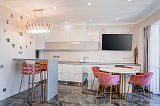 Внутри, как вы можете заметить на фотографиях, выполнен новый ремонт, который отличается высокой эстетикой и безупречным качеством. Основа оформления пространства – современный классический стиль, которой покоряет своей легкостью и элегантностью. Отметим также, что здесь продумана каждая деталь: от мебели до декоративных элементов.