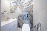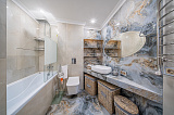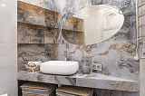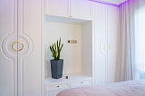 Общая площадь квартиры – 88 кв.м. Пространство поделено на 3 спальных комнаты, кухню-гостиную, 2 санузла и 2 балкона. Из окон открывается прекрасный обзорный вид на морскую акваторию и субтропическую южную зелень. Похвастаться такой роскошью может далеко не каждый владелец квартиры в Сочи.