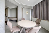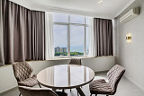 Говоря о важных особенностях данного объекта, в первую очередь хотелось бы обратить ваше внимание на сочетание внушительной квадратуры с гармоничным планировочным решением. Площадь квартиры – 114 м2. Две изолированные спальные комнаты, 2 санузла и просторная кухня, объединенная вместе с гостиной. Все комнаты – с окнами и прекрасным видом на морскую панораму. Данное решение – оптимальный вариант для семей из 3-4 человек, которым важна свобода личного пространства.