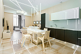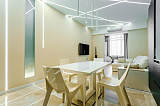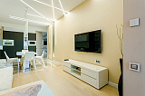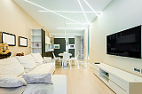 Квартира очень светлая и комфортно распланирована: две спальные комнаты, два санузла, просторная гостиная совмещенная с кухонной / столовой зоной. Квартира полностью укомплектована мебелью и всей необходимой техникой. Санузлы укомплектованы сантехникой. В квартире установлены системы кондиционирования воздуха.