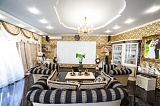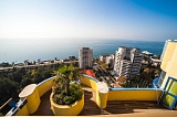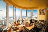 Интерьер пентхауса выполнен в стиле VERSACE. Он расположен на первой береговой линии, рядом – одни из самых престижных ресторанов и отелей Сочи. Из квартиры открывается панорамный вид, что в сочетании с отделкой создает атмосферу настоящей романтики.