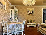 Распланирована квартира в две изолированные спальни, большой зал, кухня гостиная, два санузла, две гардеробные. Ремонт выполнен в классическом стиле с использованием зарубежных материалов, очень редкое предложение на рынке недвижимости Сочи.