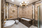 В квартире сделан качественный дизайнерский ремонт в классическом стиле, установленная импортная техника, мебель выполнена на заказ.